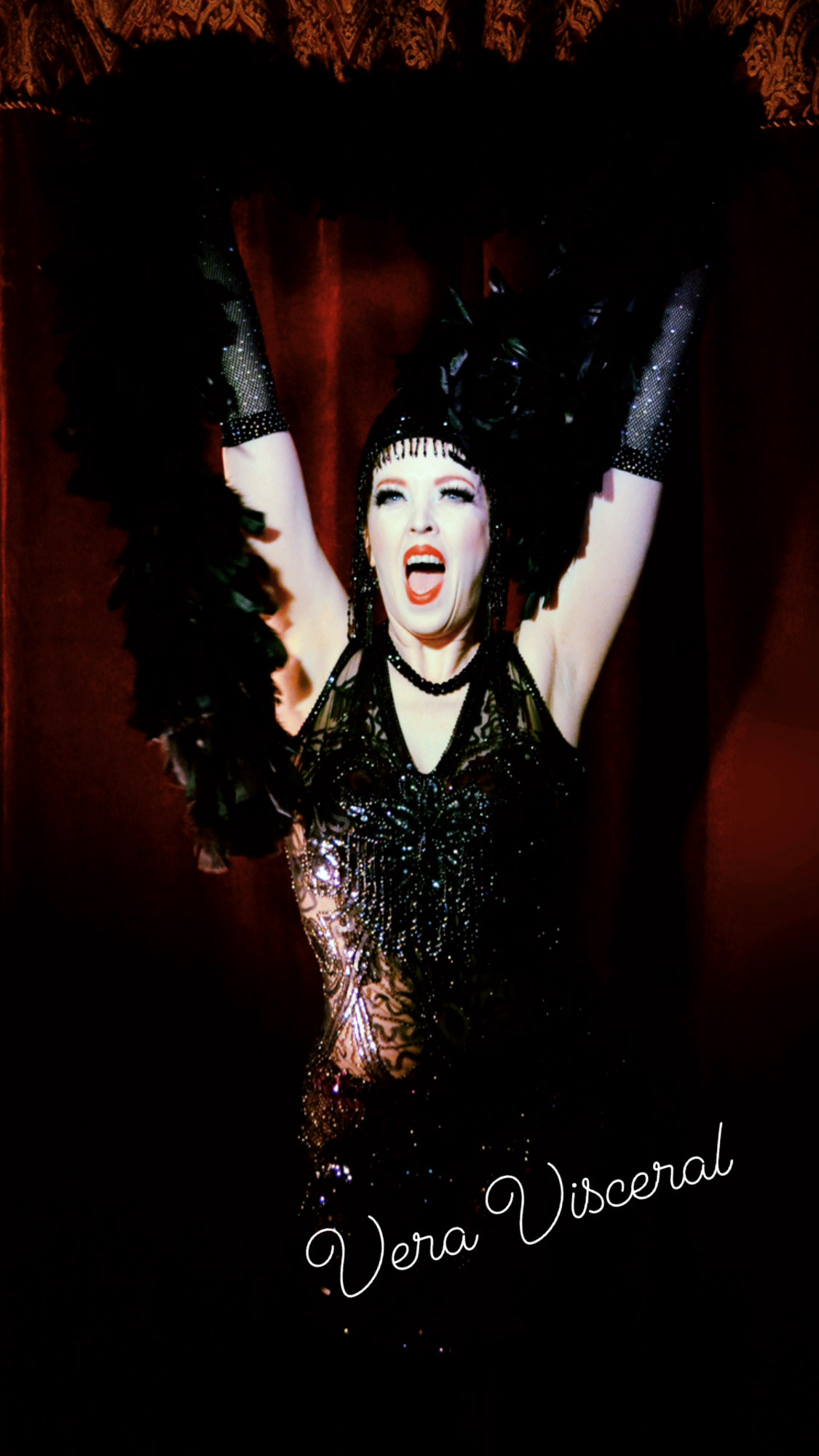 Vera Visceral performing her Lady New Year's number in the Sparkle Spectacular for Raison D'Etre Dance Project.